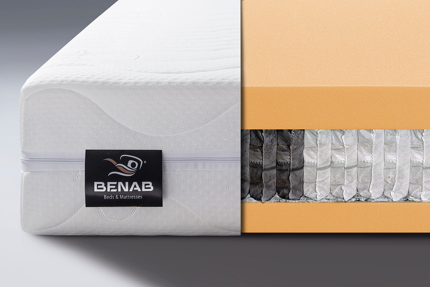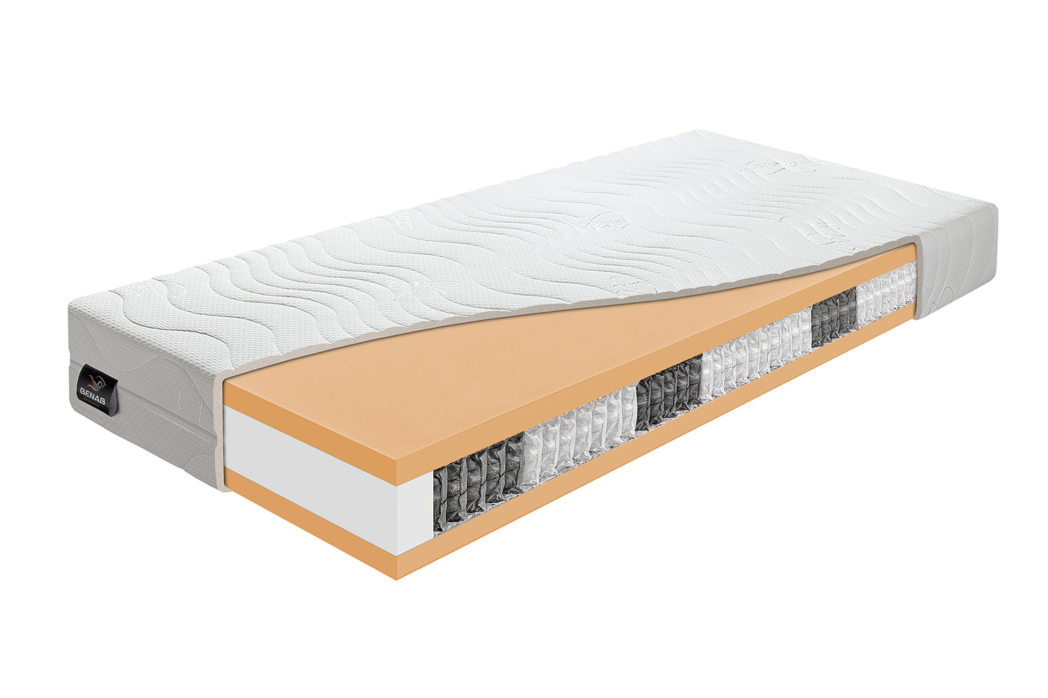 Zloženie: PUR 30 kg/m3 pena 4 cm, taštičková pružina multipocket 650 ks/m2 – 7 zon, PUR 30 kg/m3 pena 4 cm