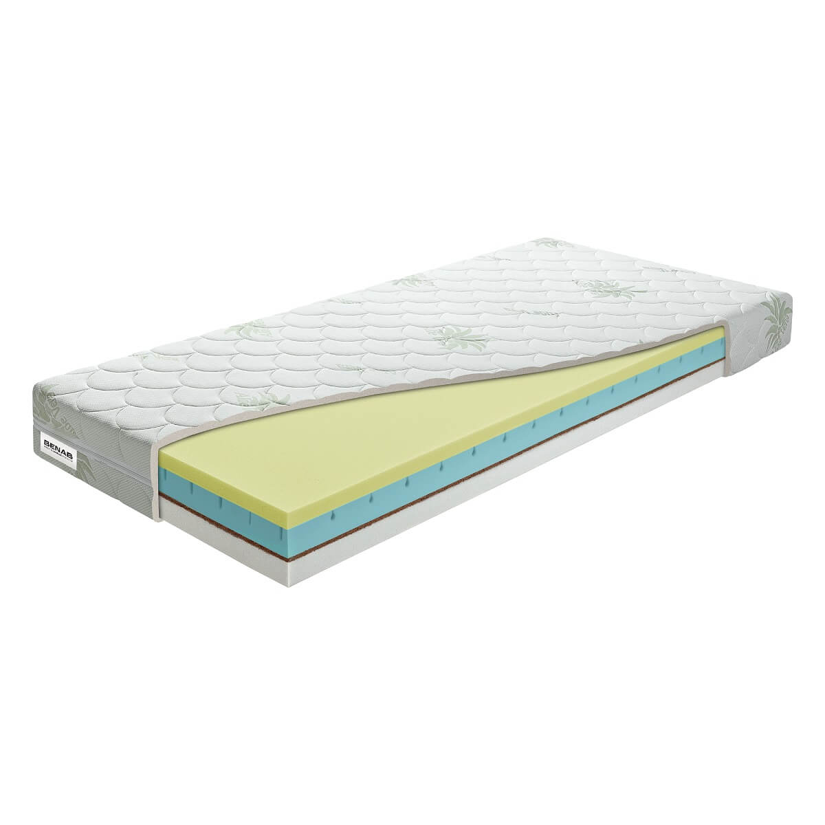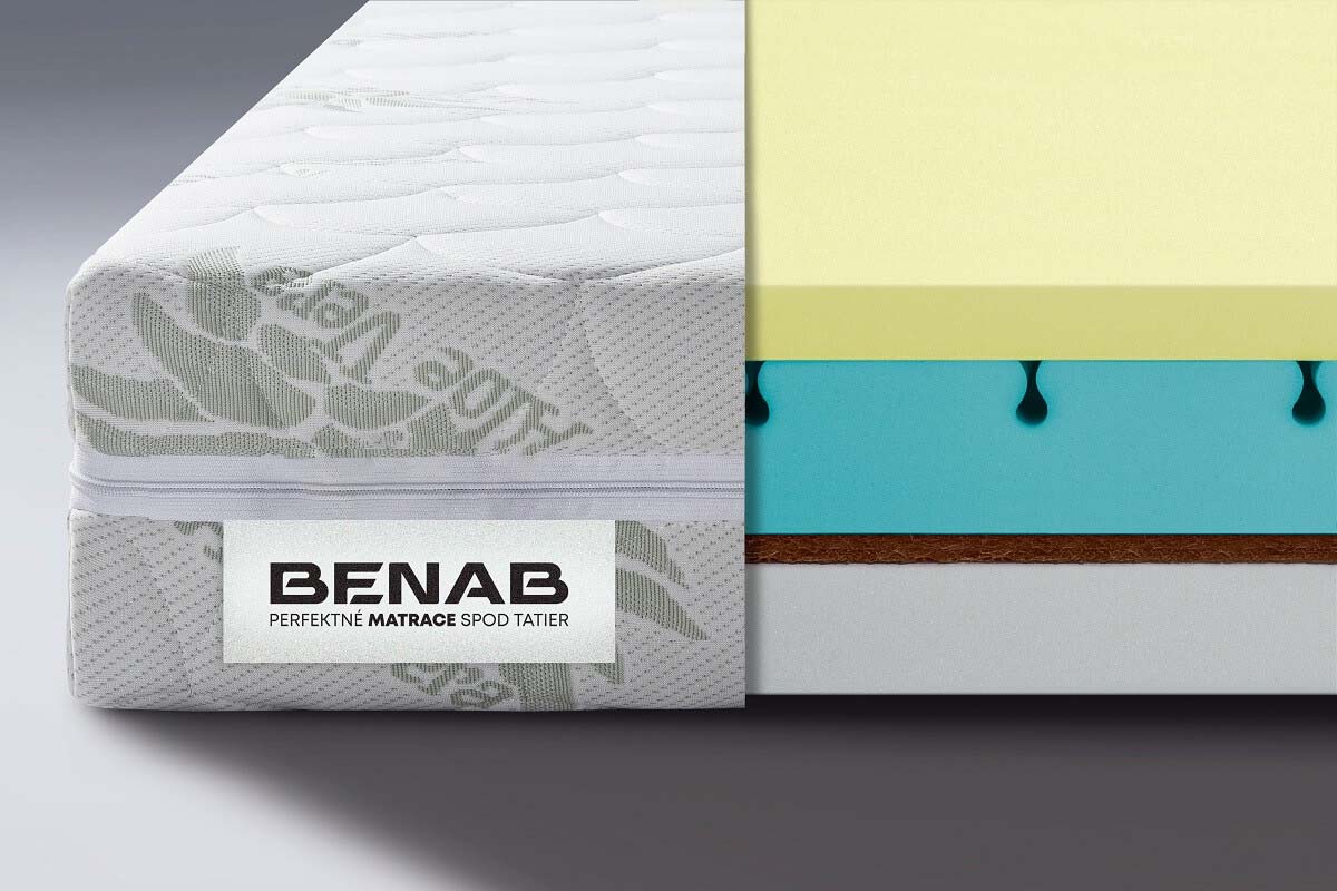 Obľúbený zdravotný matrac z VISCO elastickej pamäťovej peny a prírodného kokosového vlákna. • VISCO pena s pamäťovým efektom reaguje na teplo a tlak, optimálne sa prispôsobí krivkám Vášho tela čím uvoľňuje svalstvo a kĺby • Obdobný matrac na vyšku 18 cm ako napr. matrac TAMPA, len s ďaleko dlhšou životnosťou vďaka hustejším penám,čím hustejšia pena,tým je dlhšia životnosť matraca, obojstranne použiteľný a cenovo výhodný zdravotný matrac - stredové spevnenie a prevzdušnenie jadra pomocou kokosovej vrstvy • odporúčaný rošt lamelový • štandardné vyhotovenie v poťahu - Aloe Vera • VISCO 50 kg/m2, PUR jadro 35 kg/m3, kokosová vrstva 1300 gr/m2, PUR 30kg/m2 Poťah - ALOE VERA • poťahová látka s výťažkami z tejto rastliny obsahuje prevažne enzýmy, minerálne látky a aminokyseliny, ktoré veľmi pozitívne pôsobia na pokožku a posilňujú relaxačné účinky spánku • príjemne mäkký poťah so schopnosťou regenerácie pokožky ľudského tela, vlastnosti tejto látky zaručujú dostatočnú hygienu • certifikovaný a zdravotne nezávadný OEKO-TEX štandard • zloženie: 85 % polyester; 15 % viskóza, obohatený o výťažky z aloe vera, poťah prešitý s klimatizačnou výplňou, PES vláknom 250 gr/m2 •antibakteriálny, antiroztočový, odzipsovateľný a prateľný do 60°C
