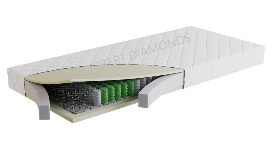 Použitý materiál PUR pena 28 kg/m3, taštičková pružina 250 ks/m2