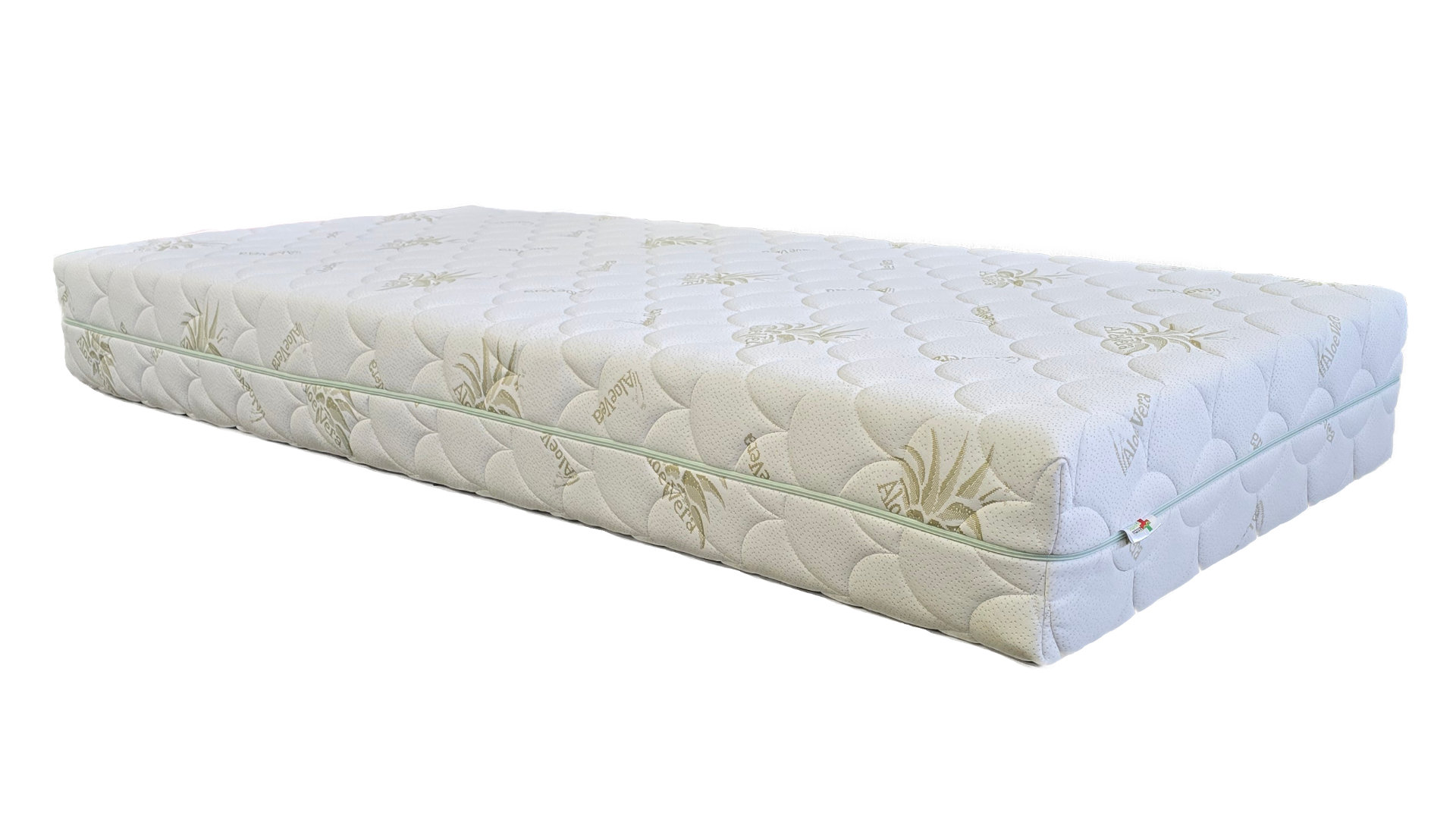Povrch matraca je doplnený o prémiový poťah ALOE VERA, ktorý je nielen príjemný na dotyk, ale zároveň má antibakteriálne a upokojujúce účinky, čím prispieva k zdravému a hygienickému spánkovému prostrediu.