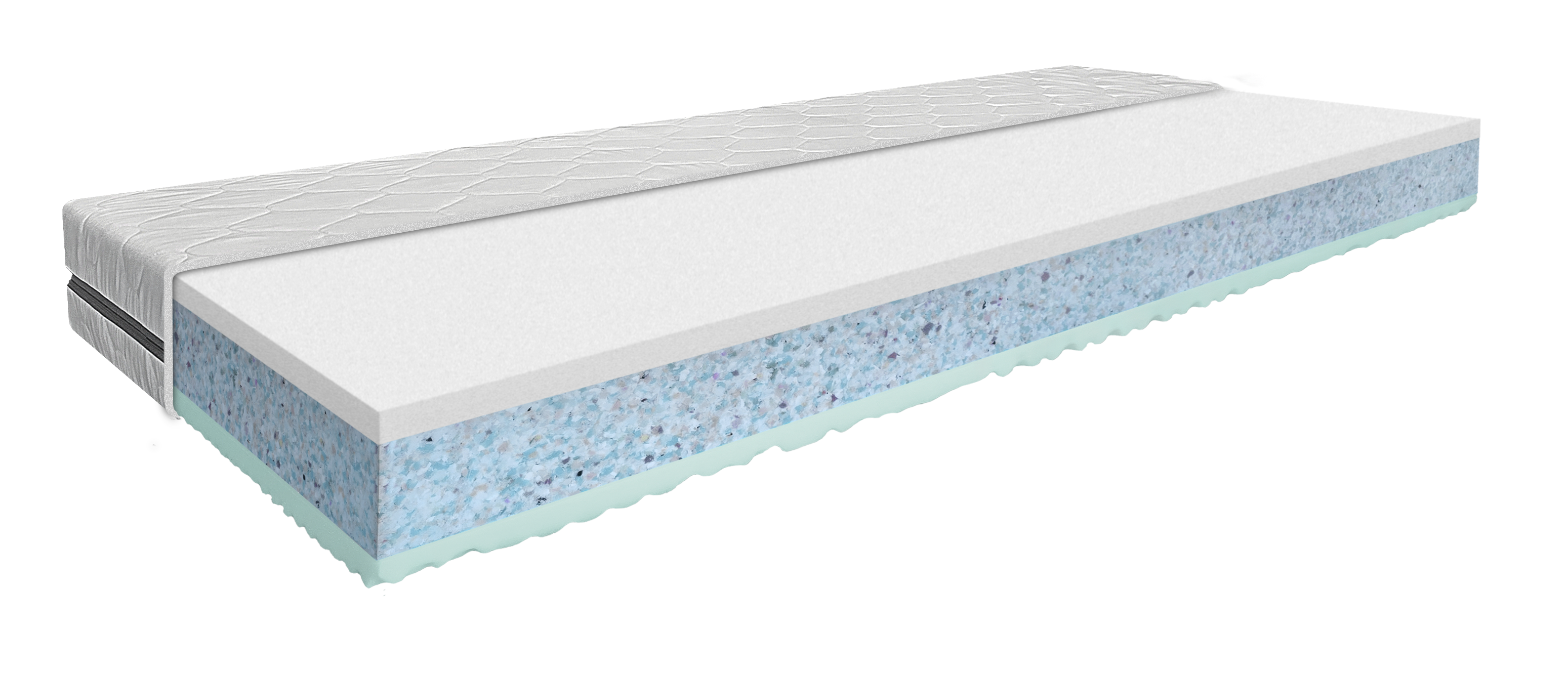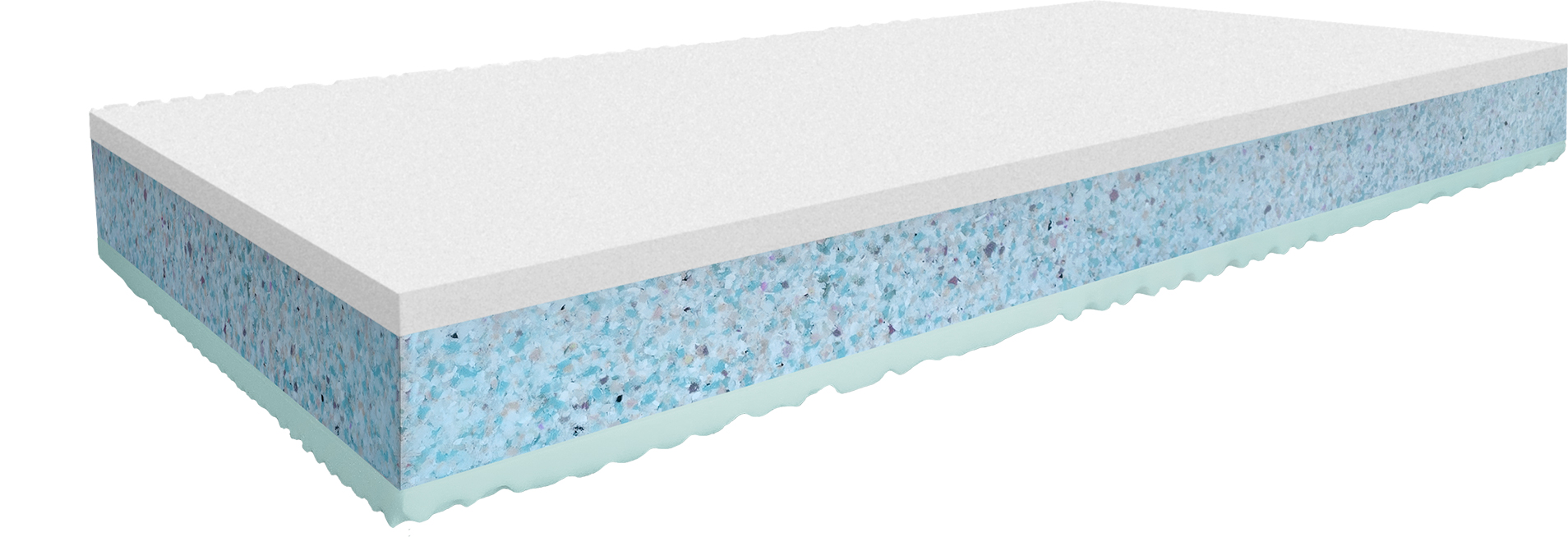 Použitý materiál PUR 7 zón profil 28 kg/m3, POE/RE pena 70 kg/m3, PUR 28kg/m3