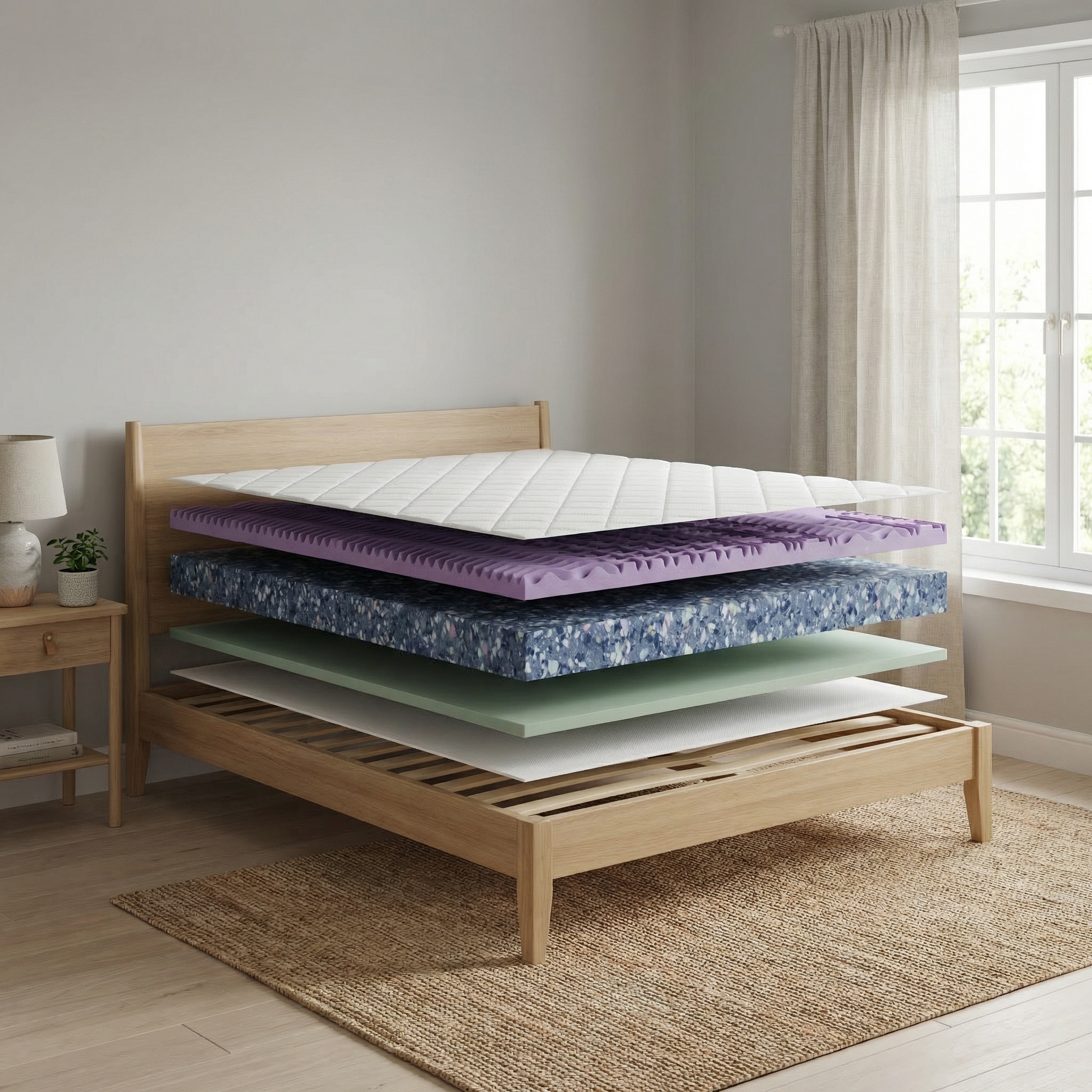 POE/RE PENA RE pena je recyklovaná drvená polyuretánová pena a vyrába sa spájaním rôznych materiálov pod silným tlakom. RE pena dodáva matracom vyššiu tuhosť a teda aj nosnosť.