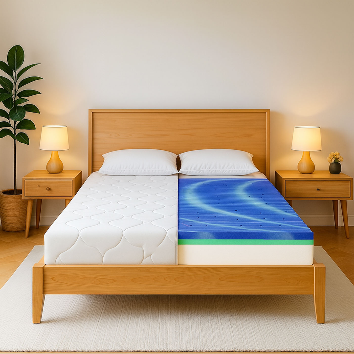 Matrac má dve rozdielne strany tuhosti, čo umožňuje prispôsobiť si spánok presne podľa individuálnych potrieb. Tuhšia strana je vybavená 3 cm vlnkovanou PUR penou s vyššou hustotou, ktorá zabezpečuje pevný podklad, optimálnu oporu chrbtice a výrazný ortopedický efekt. V kombinácii s masívnym 12 cm PUR jadrom vytvára mimoriadne stabilnú konštrukciu s dlhodobou tvarovou stálosťou.