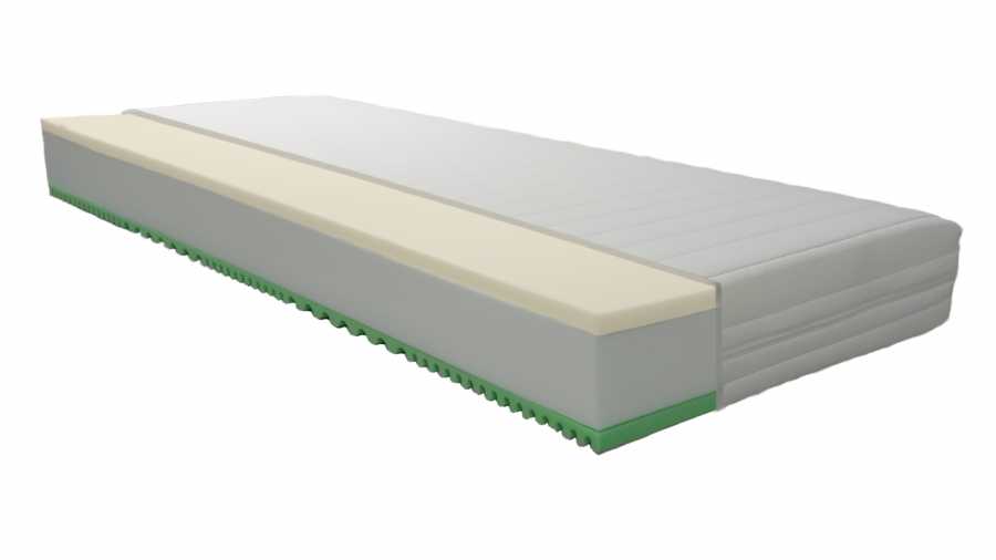 Použité materiály zaručujú optimálnu oporu tela, dlhú životnosť a vysoký komfort – VISCO pena 52 kg/m³, PUR pena so 7-zónovým profilom 30 kg/m³ a PUR jadro 30 kg/m³.