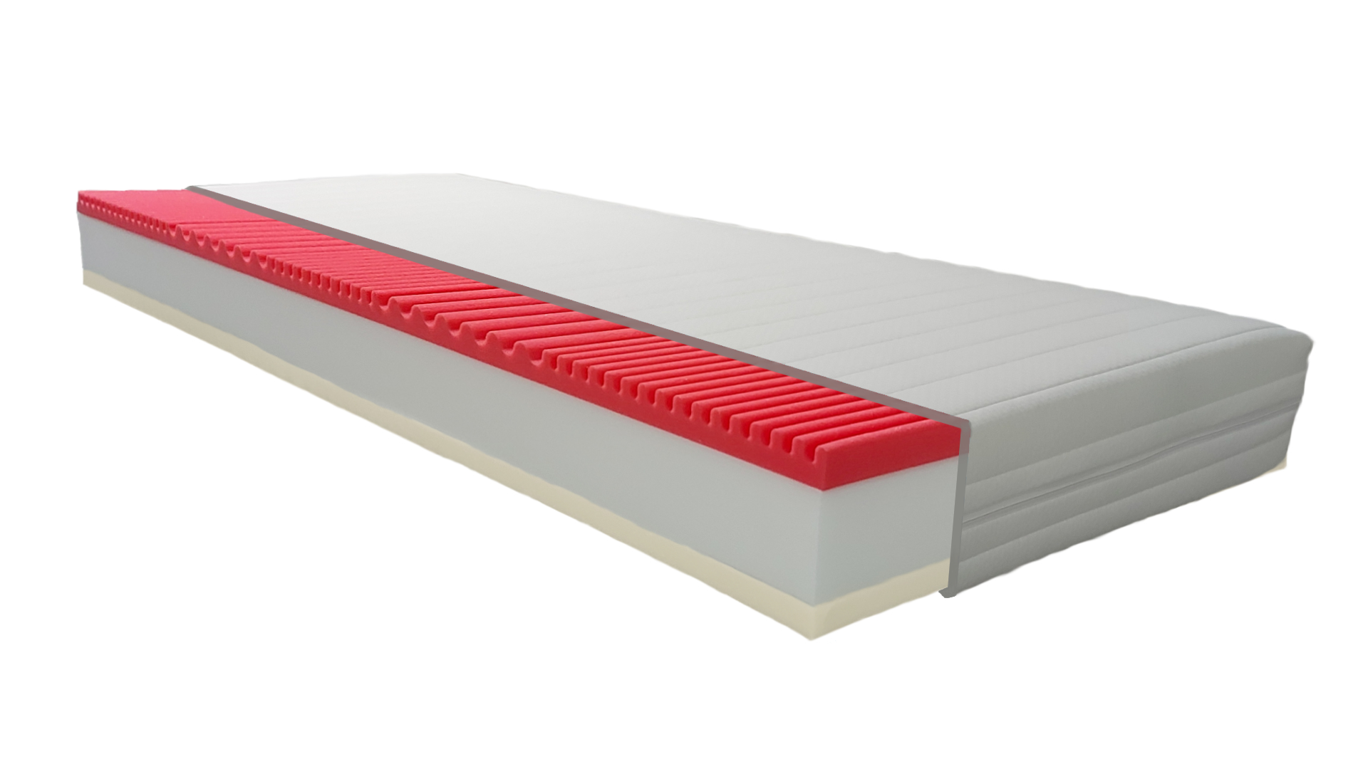 Použité materiály zabezpečujú optimálnu oporu tela a dlhú životnosť – VISCO pena 55 kg/m³ / PUR pena so 7-zónovým profilom 35 kg/m³ a PUR jadro 35 kg/m³.