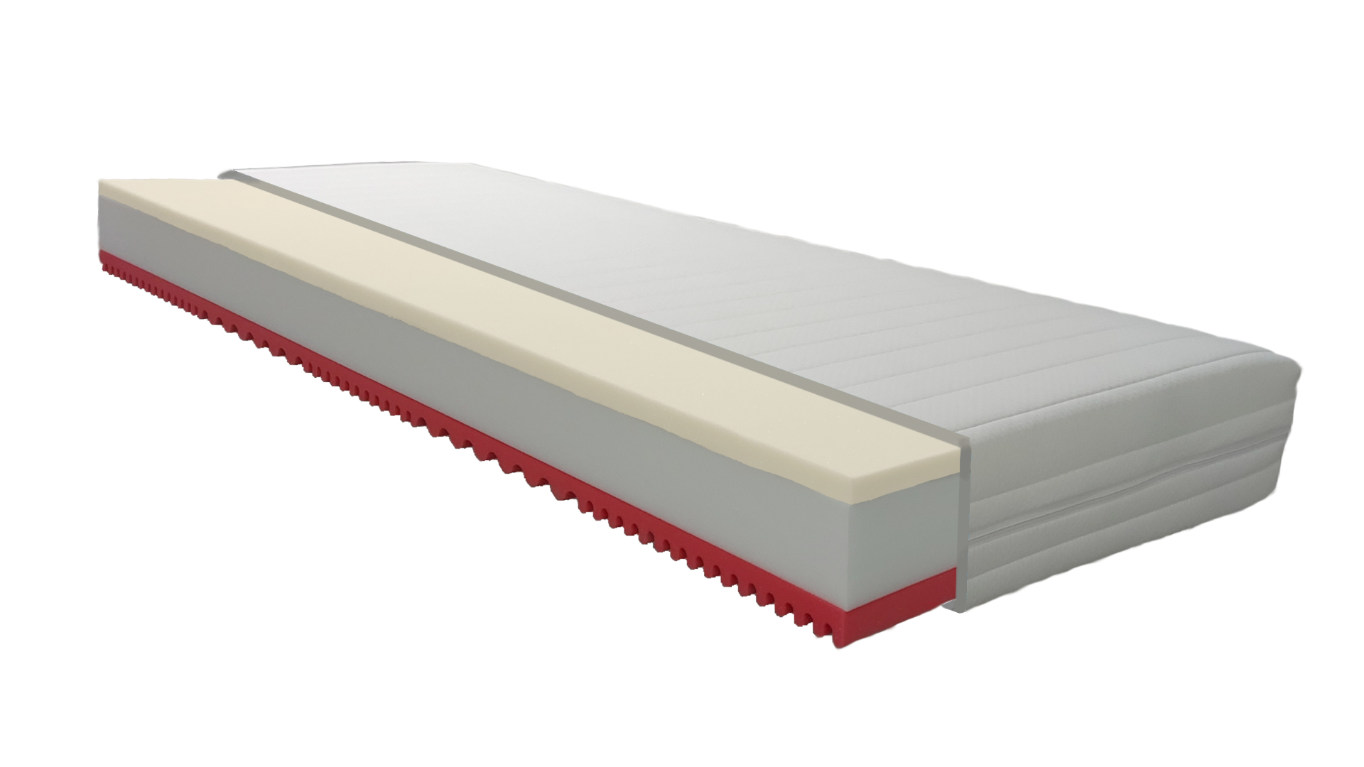 Použité materiály zabezpečujú optimálnu oporu tela a dlhú životnosť – VISCO pena 55 kg/m³ / PUR pena so 7-zónovým profilom 35 kg/m³ a PUR jadro 35 kg/m³.