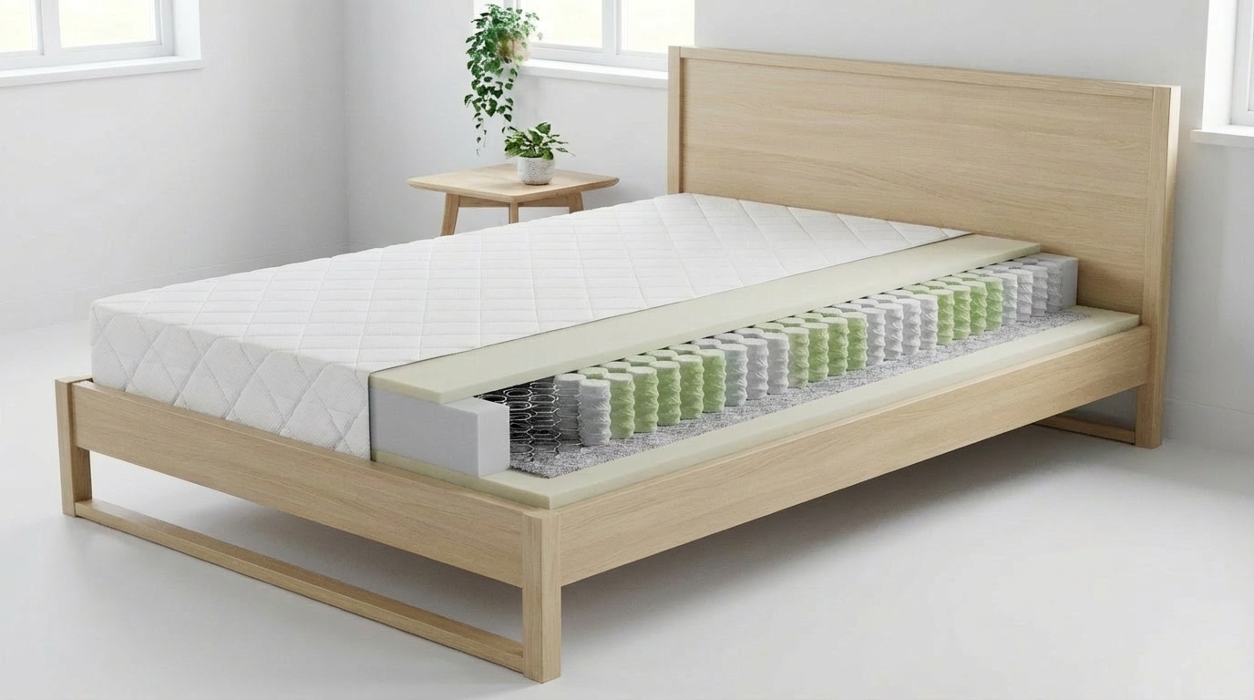 Použitý materiál PUR pena 35 kg/m3, taštičková pružina 250 ks/m2