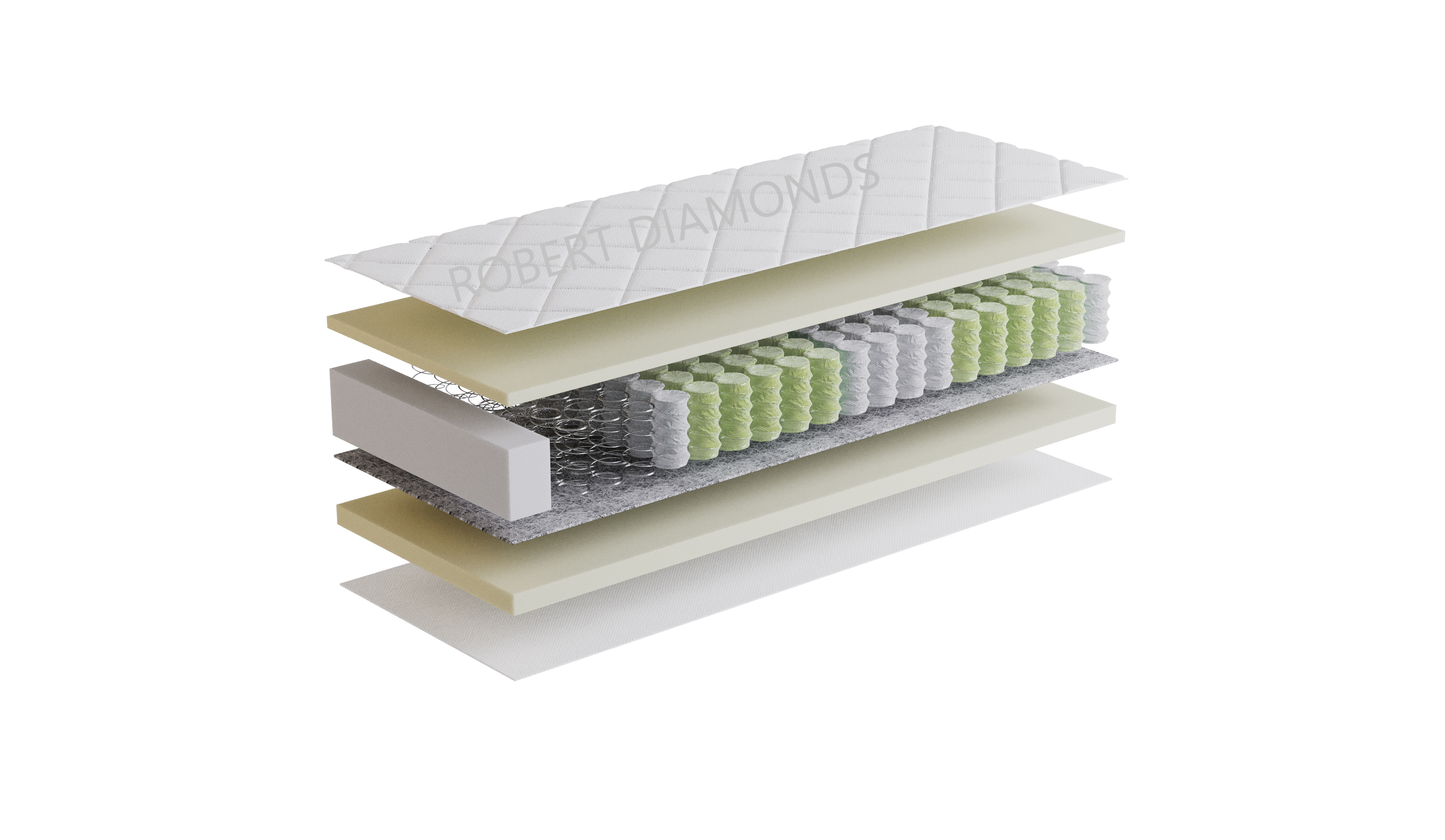 Použitý materiál PUR pena 35 kg/m3, taštičková pružina 250 ks/m2