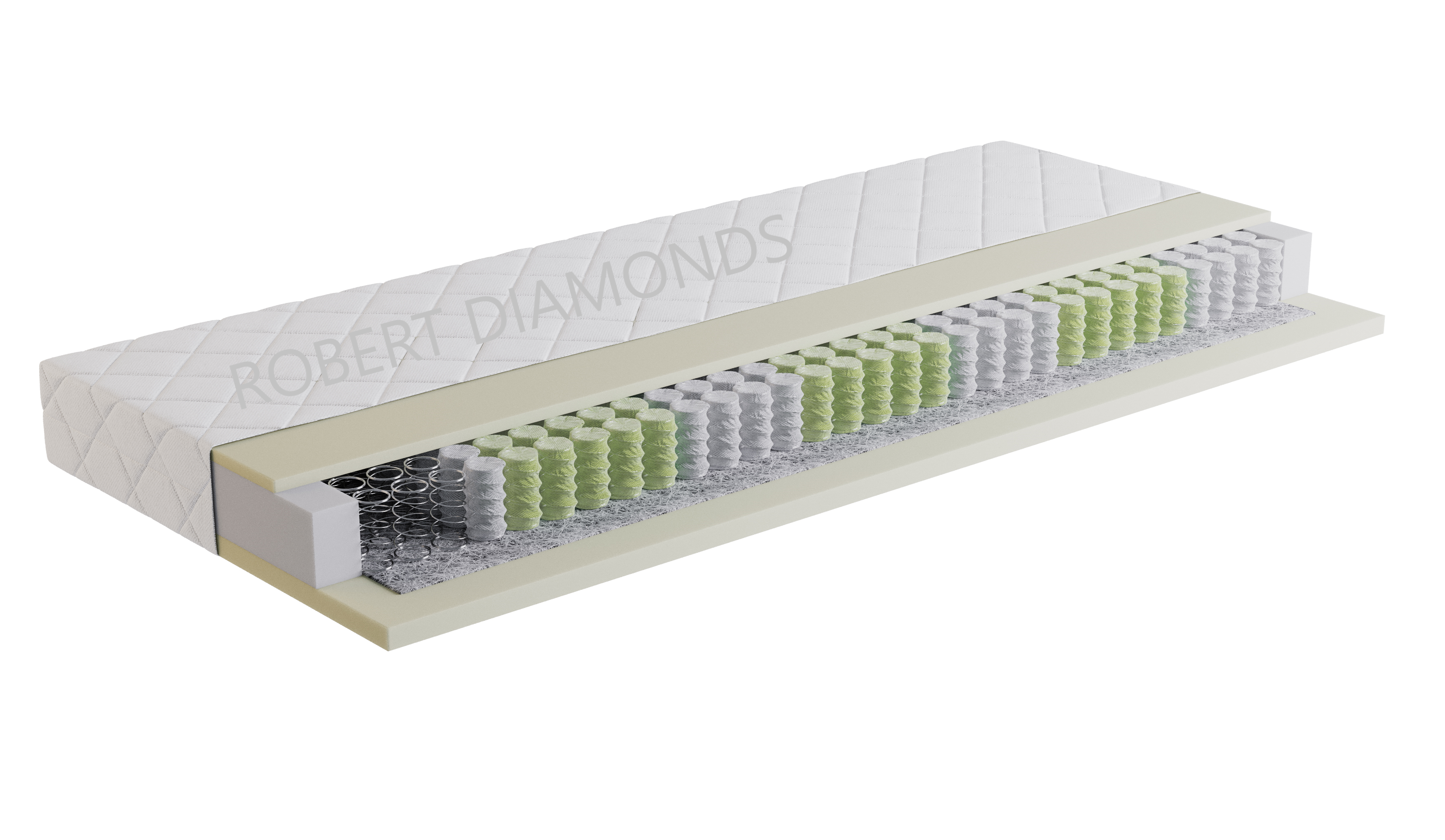 Použitý materiál PUR pena 35 kg/m3, taštičková pružina 250 ks/m2
