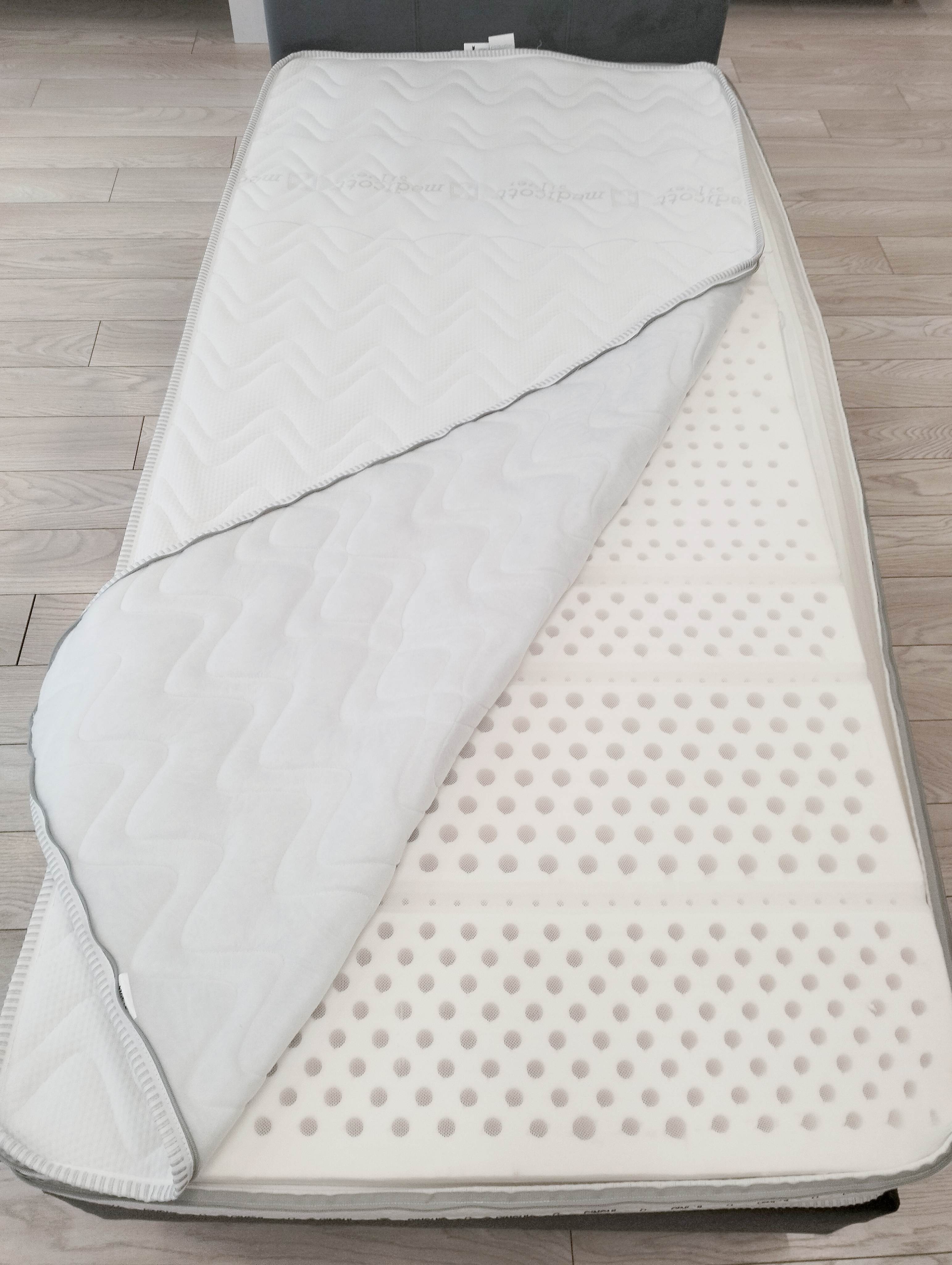 Komfort z odpočinku znásobuje prešívaný poťah Medicott Silver s thermo výplňou 250 g/m2 a TNT 40 g/m2. Poťah matraca je možné vyzliecť a vyprať vďaka všitému zipsu po celom obvode matraca.