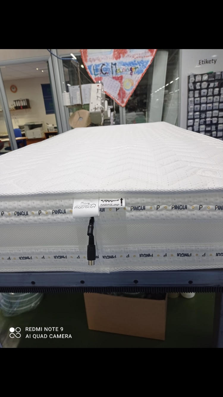 Ideálny matrac pre páry s váhovým rozdielom, určený pre ľudí s bolesťami chrbtice, krčnej chrbtice a kĺbov a navyše ako jediný matrac na slovenskom trhu,ktorý masiruje od hlavy až po päty s nastaviteľným ovládaním intenzity,revolučná novinka,ktorá Vám a Vášmu telu prinesie dokonalý oddych počas spánku a nezabudutnuteľnú masaž pri zdravotných problémoch chrbtice,krčnej chrbtice a počas Vášho oddychu a relaxu aj počas dňa. Vďaka svojmu zloženiu a kvalite materiálov má veľmi dlhú životnosť . Na prvý pohľad ide o luxusný matrac aj vďaka svojmu kvalitne ručne prešivanému poťahu s použitím striebra a unikatným 3D pásikom na odvetrávanie matraca,ktorý je po celom obvode matraca a tým zabezpečuje dokonalé odvetrávanie matraca a dokonalú priedušnosť.