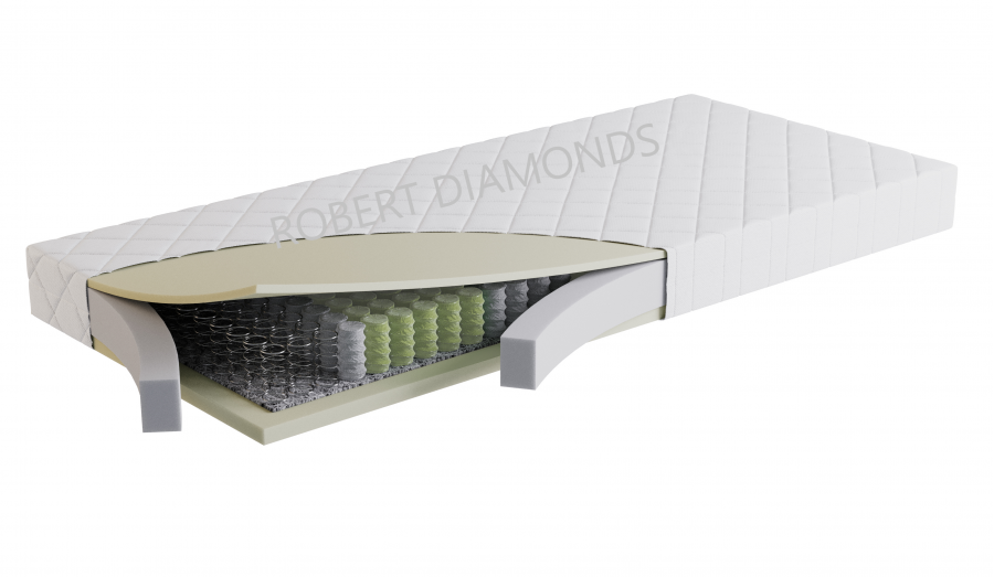 Použitý materiál PUR pena 35 kg/m3, taštičková pružina 250 ks/m2