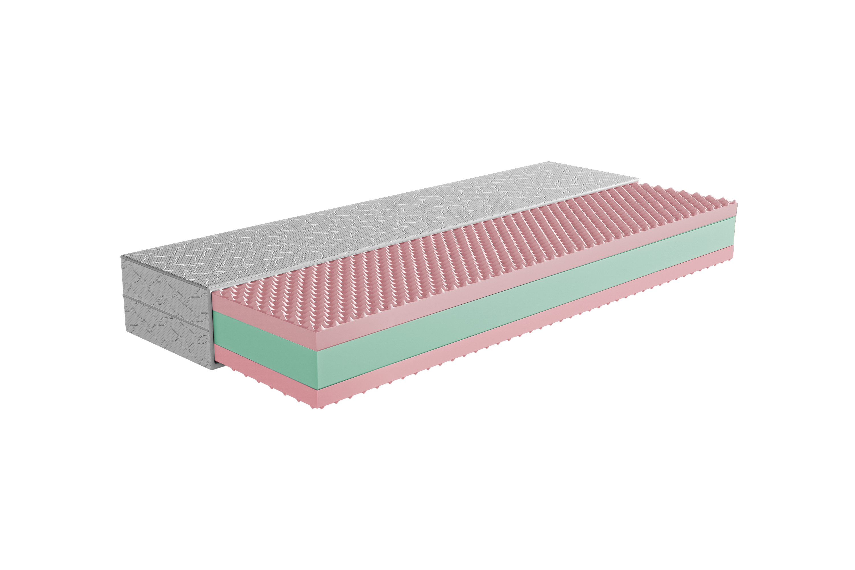 Matrac je vyrobený z kvalitnej PUR peny s hustotou 30 kg/m³, ktorá sa vyznačuje dobrou nosnosťou, tvarovou stálosťou a dlhodobou odolnosťou. Pena zabezpečuje rovnomerné rozloženie hmotnosti tela a podporuje zdravé držanie chrbtice počas spánku. Obojstranné prevedenie predlžuje životnosť matraca a umožňuje striedať tuhosti podľa aktuálneho pocitu alebo sezóny.