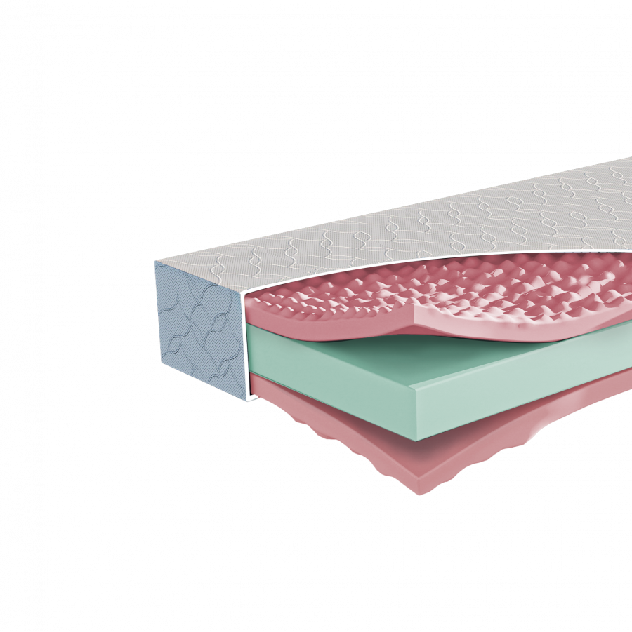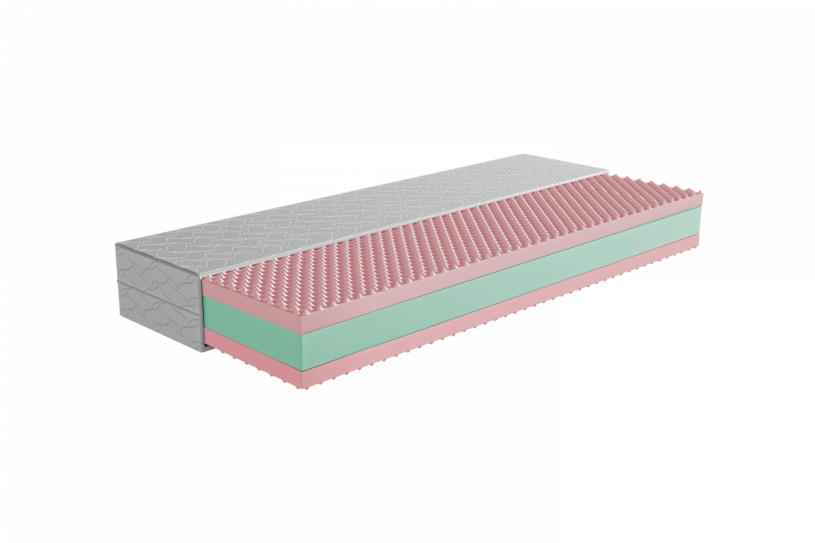 Matrac je vyrobený z kvalitnej PUR peny s hustotou 30 kg/m³, ktorá sa vyznačuje dobrou nosnosťou, tvarovou stálosťou a dlhodobou odolnosťou. Pena zabezpečuje rovnomerné rozloženie hmotnosti tela a podporuje zdravé držanie chrbtice počas spánku. Obojstranné prevedenie predlžuje životnosť matraca a umožňuje striedať tuhosti podľa aktuálneho pocitu alebo sezóny.