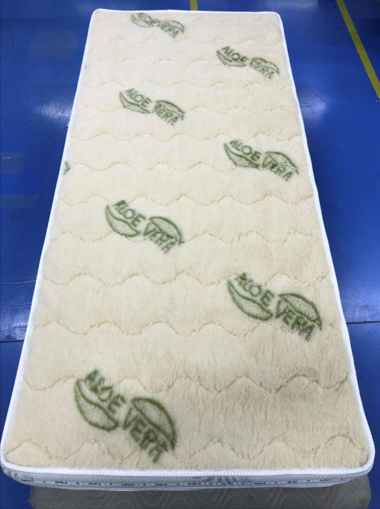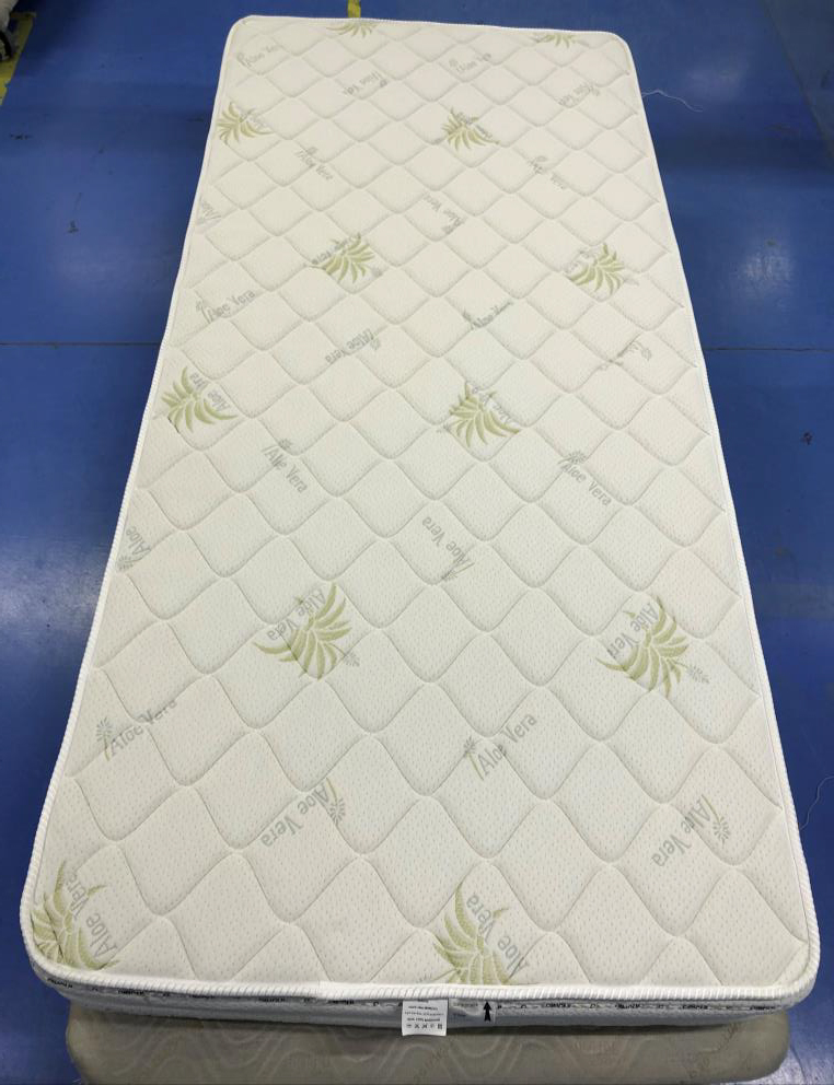 Poťah 1: látka Aloe Vera prešívaná 2 cm vrstvou pamäťovej peny Sonnocell® Visco Memory s Termo vláknom 250g/m2 a TNT textíliou 15g/m2 a etiketou s ošetrujúcimi symbolmi